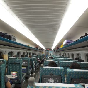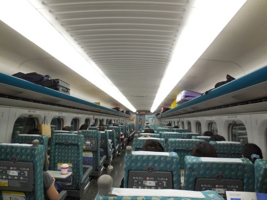 車輌は、日本の700系とそっくりですが、速度表示があったり、ごみ箱がなかったりしましたが、ごみ袋を持ったおばさんが回収に来てくれるなど、独自のサービスがあって面白かったです。