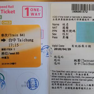 外国人専用の切符なので、当日発券しかできないのですが、空いていたため希望の列車を予約でき、また乗車駅の台中、下車駅の台北とも改札は思っていた以上にスムース通ることができました。