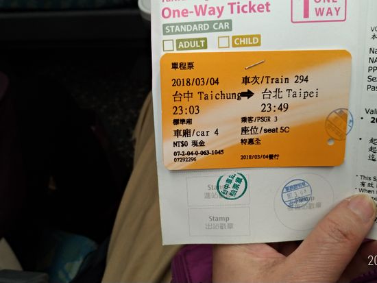 | プラン: | 台中 - 台北 間 |