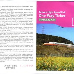 VELTRAの台中発着阿里山1日観光ツアーに台北から日帰りで参加した際に、台中から台北への帰路でこの台湾高速鉄道(新幹線)の外国人限定割引チケットもVELTRAで事前購入して当日に利用しました。台北から台中への往路の新幹線は早朝であり、当日の窓口での乗車手配で満席で乗れないと困るので台湾高鉄のインターネットサイトで特定時間の列車を事前予約で購入しました。