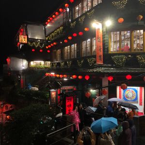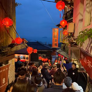 私は桃園空港からチャーターをお願いしたのですが、片道1時間10分くらいかかり、九份での滯在時間は2時間でした。私にとっては十分な時間でした。着いたのは17時ごろで、ちょうど町中がライトアップされており綺麗でした。観光客も多く、とても賑わっていました。