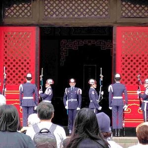 昨日(11月13日)に引き続きこの日もドライバーは徳さんで、2日連続でお世話になりました。この日は半日で台北の有名場所を巡る案を作って徳さんに案内してもらいました。訪問場所は、中正紀念堂、台湾総統府、龍山寺、孔子廟、行天宮、忠烈祠堂と回り、その後自分で予約していた昼食場所の金品茶樓で解散というコースです。中正紀念堂で衛兵の交代式を見る予定でしたが、この日は見ることができなかったため、徳さんの判断で忠烈祠堂を追加で訪問して衛兵の交代式を見ることができました。