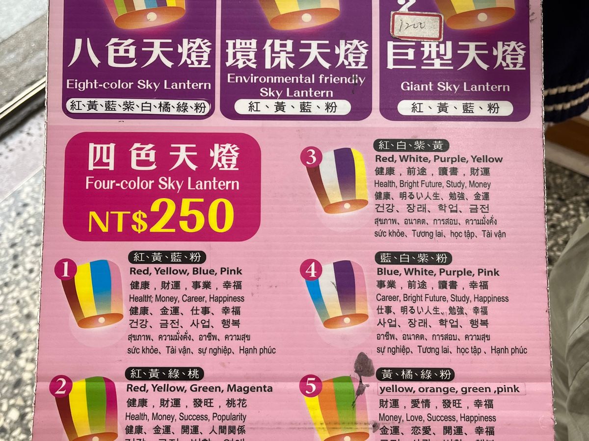 特にランタンは2個とも天高く舞い上がり1時間に1本(往復)する路線電車にも遭遇し紹介していただいたつまみ類の食べ歩きやタピオカミルクティーも美味しく家族全員大満足でした。九分で余った時間が十分でしっかり取れました。