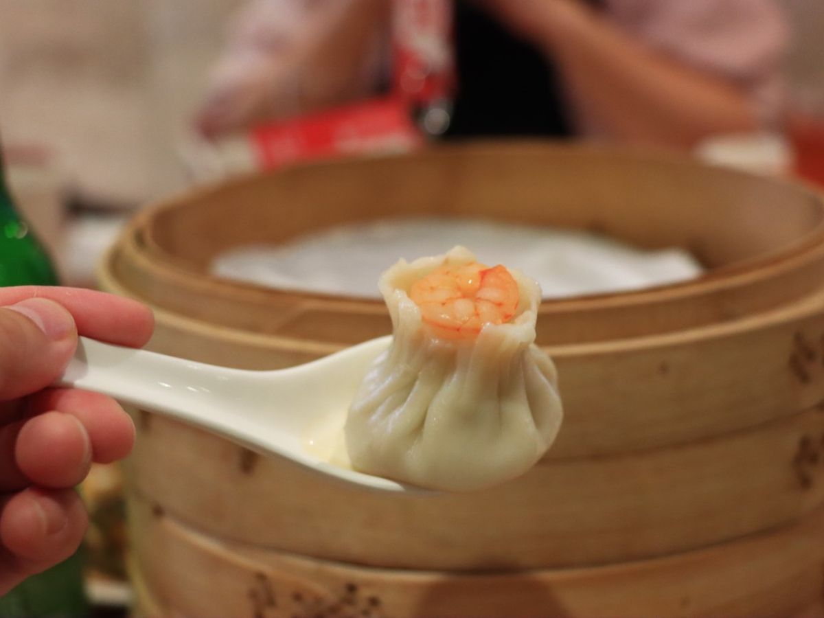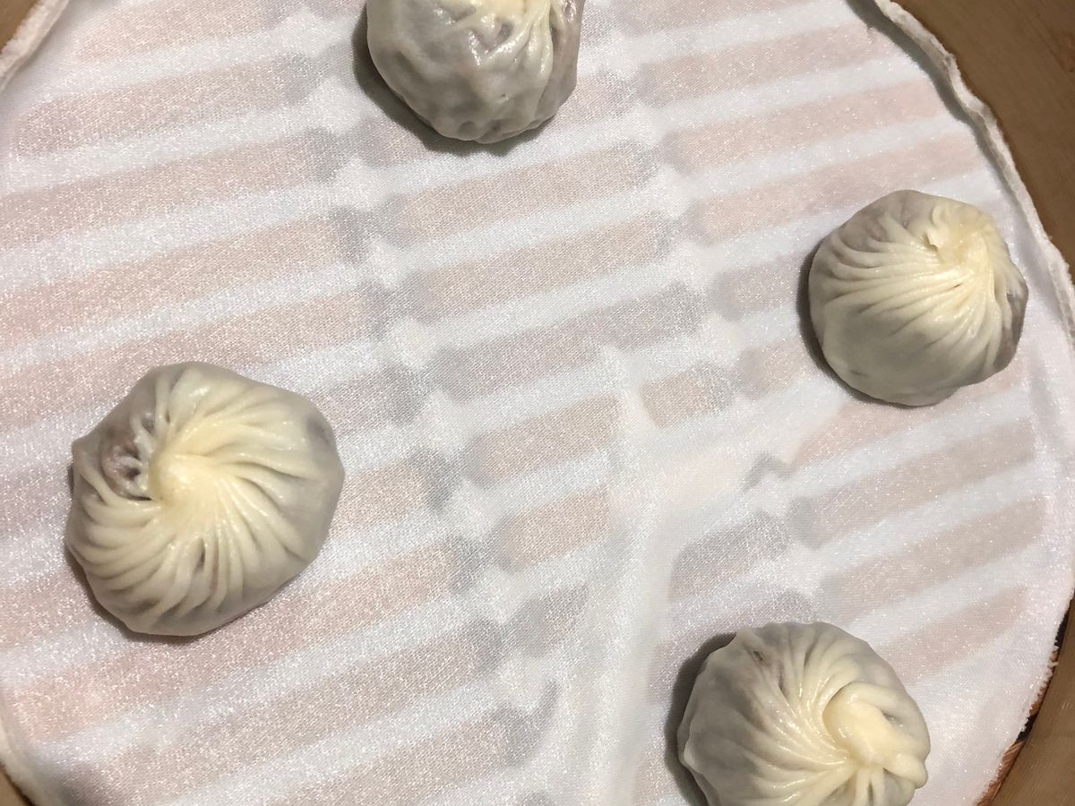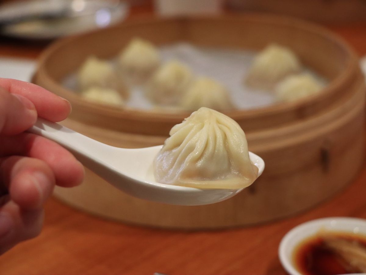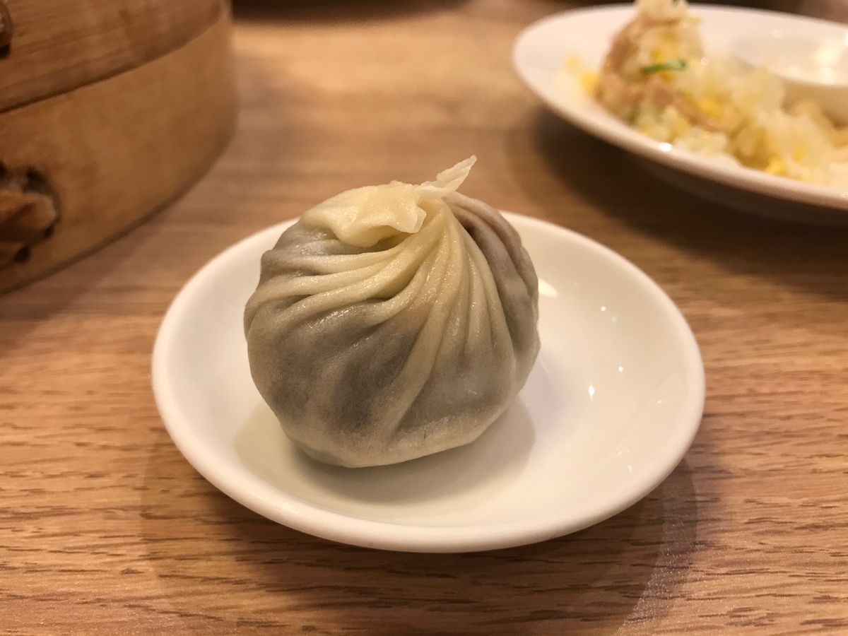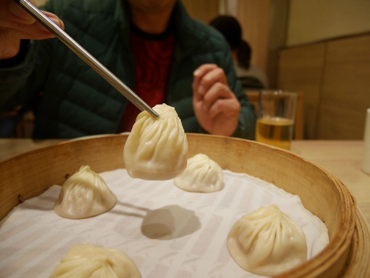 箸で持つとスープの重みで小籠包は丸くなります。初めて食べた娘もあまりの美味しさに笑顔が隠せませんでした。これぞ絶品!
