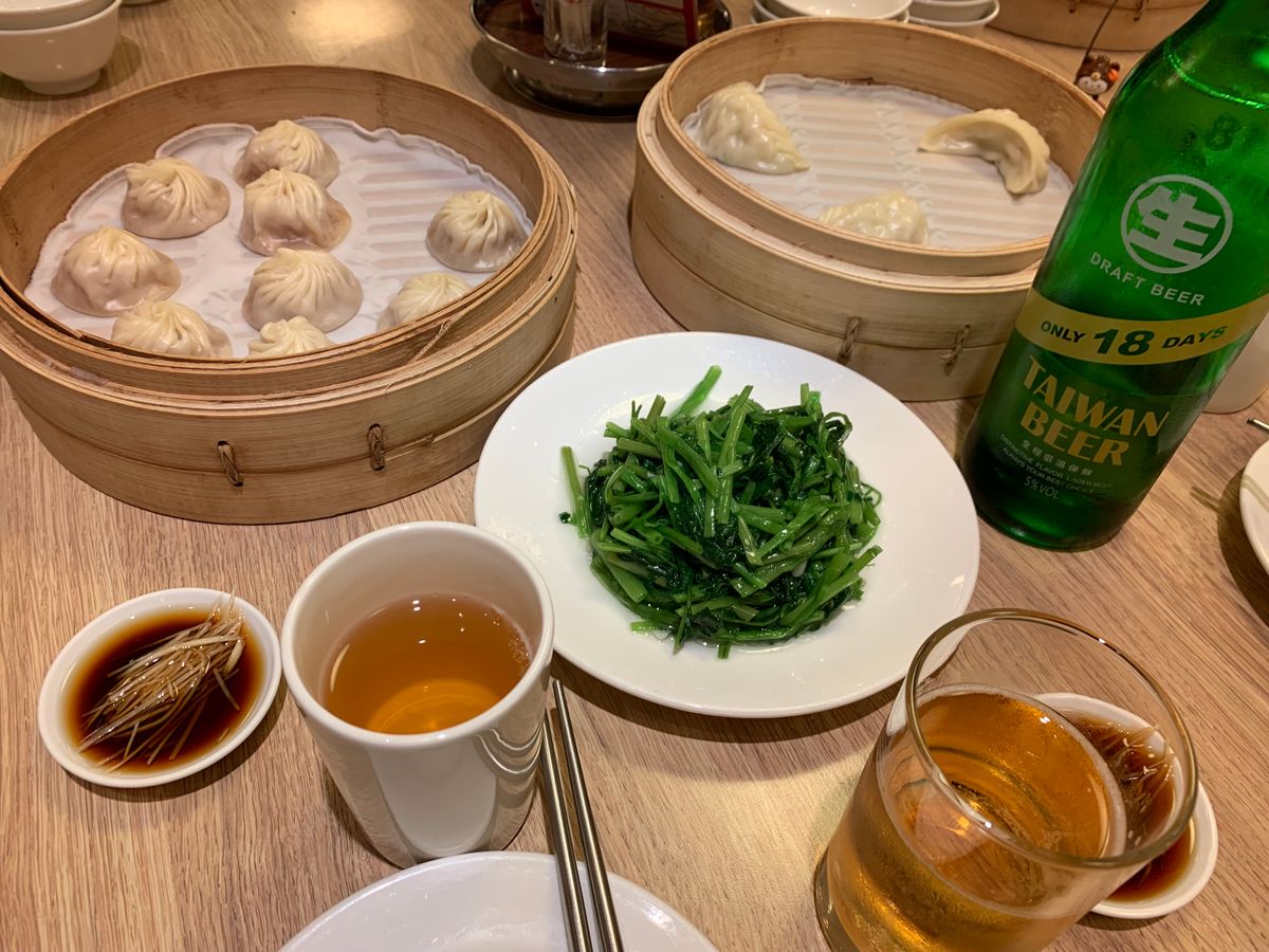 土曜で本店が21:00閉店、101店が22:00閉店と20:30を過ぎてから知り、焦って21:05頃101店に駆け込みましたが、ちらほら席は空いている様子。(曜日等にもよるかと思いますので、正確な時間は必ず調べてください。念のため。)とはいえ店の外には30分待ちの表示で人が待機しています。こちらのバウチャー提示したところ即案内。ペースよく様々な種類の点心が出てきます。どれもかなり美味しいです。ジャスミンティーもおかわりしまくりでした。小籠包を包む方を背景に写真が撮れるフォトスポットもよかったです。今回の台湾旅行でやはりこちらの小籠包が1番美味しかったです。絶対行くべきだし時間の節約になるのでかなりおすすめです。