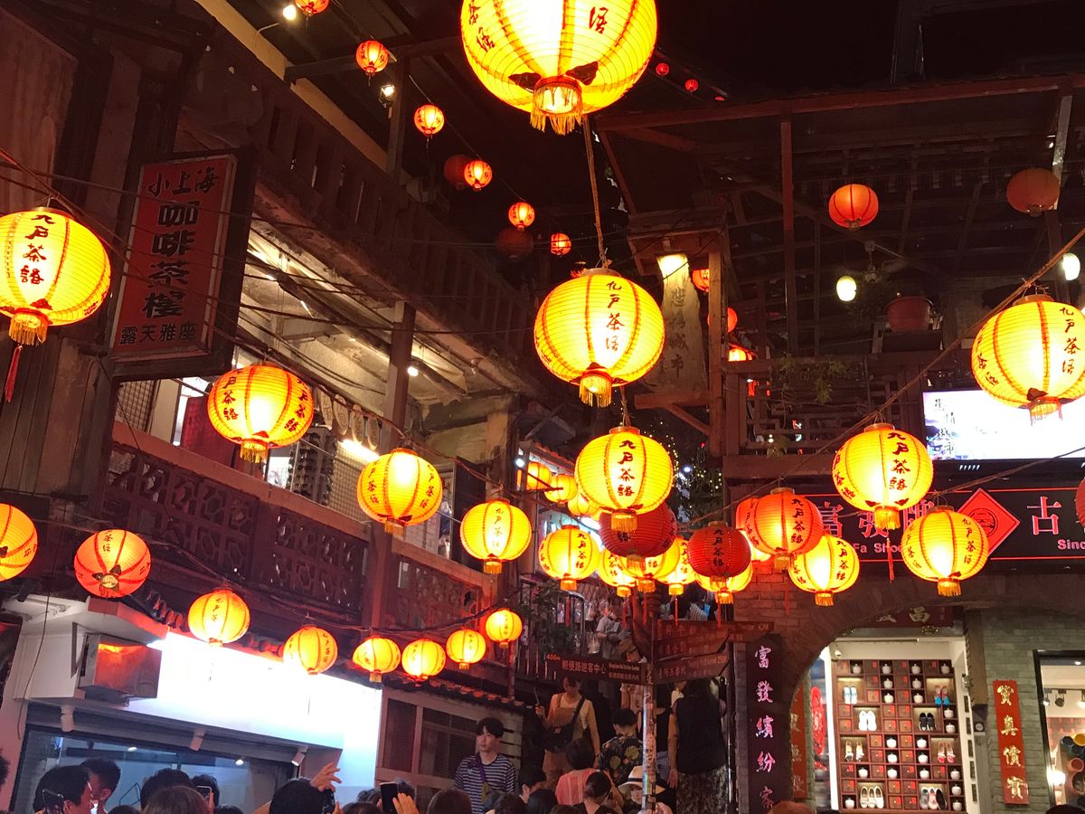 その後に九份に移動したのですが、赤い提灯が夜空にはえて とても良い雰囲気でした。