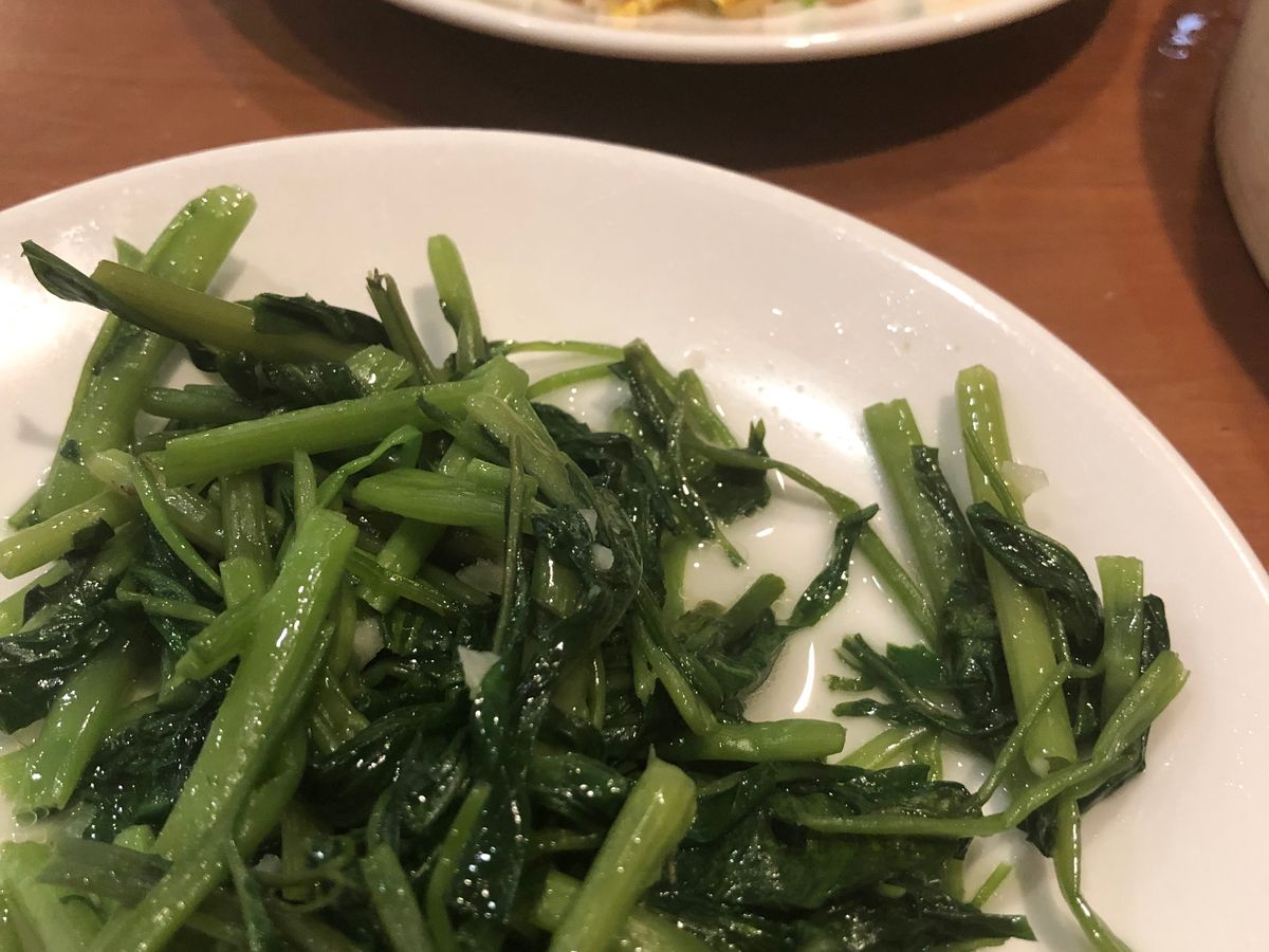 空芯菜の炒め物、好物なのに既にお腹いっぱいとなり残してしまいました。