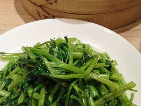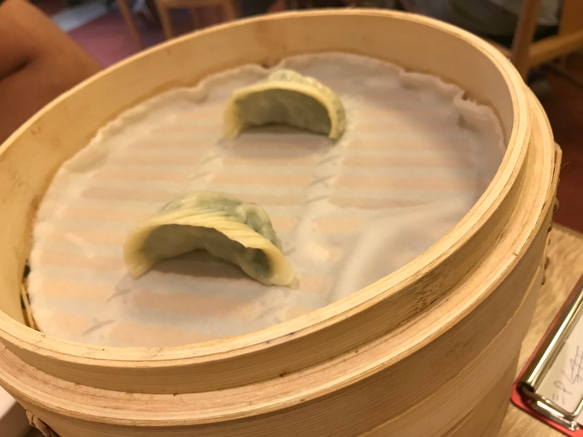 料理の方は、小籠包が1人8個。ほかはいろいろな種類の餃子が各1個が出てきました。空心菜もおいしかったです。デザートまで満腹で満足のいくものでした。