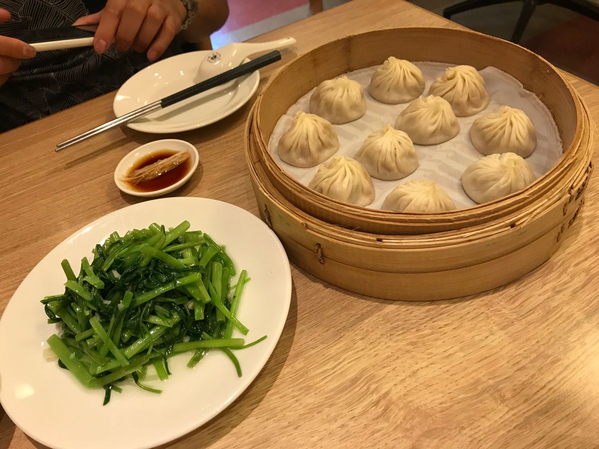 小龍包は熱々出来立て、他には空芯菜の炒め物や野菜餃子、エビ焼売、酸辣湯、チャーハンなど、小サイズでしたが、二人で十分楽しめるメニューでした。