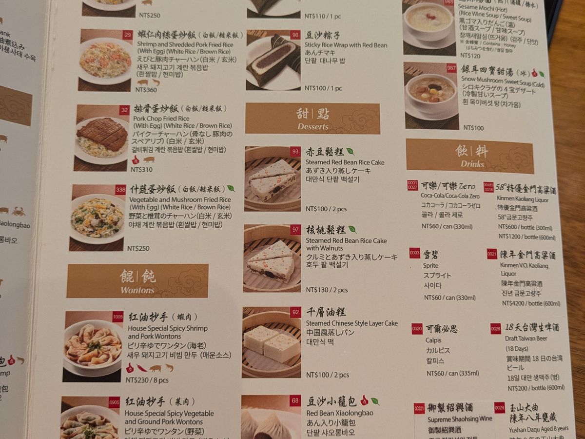 追加で小籠包とパイコー炒飯、冷たいドリンクも頼みました。スタッフは皆忙しく動き回ってますが、手をあげてコンタクトすればすぐにメニューブックを頼めました。予め提供メニューが決まっているからかテーブルにメニューはありませんでした。
