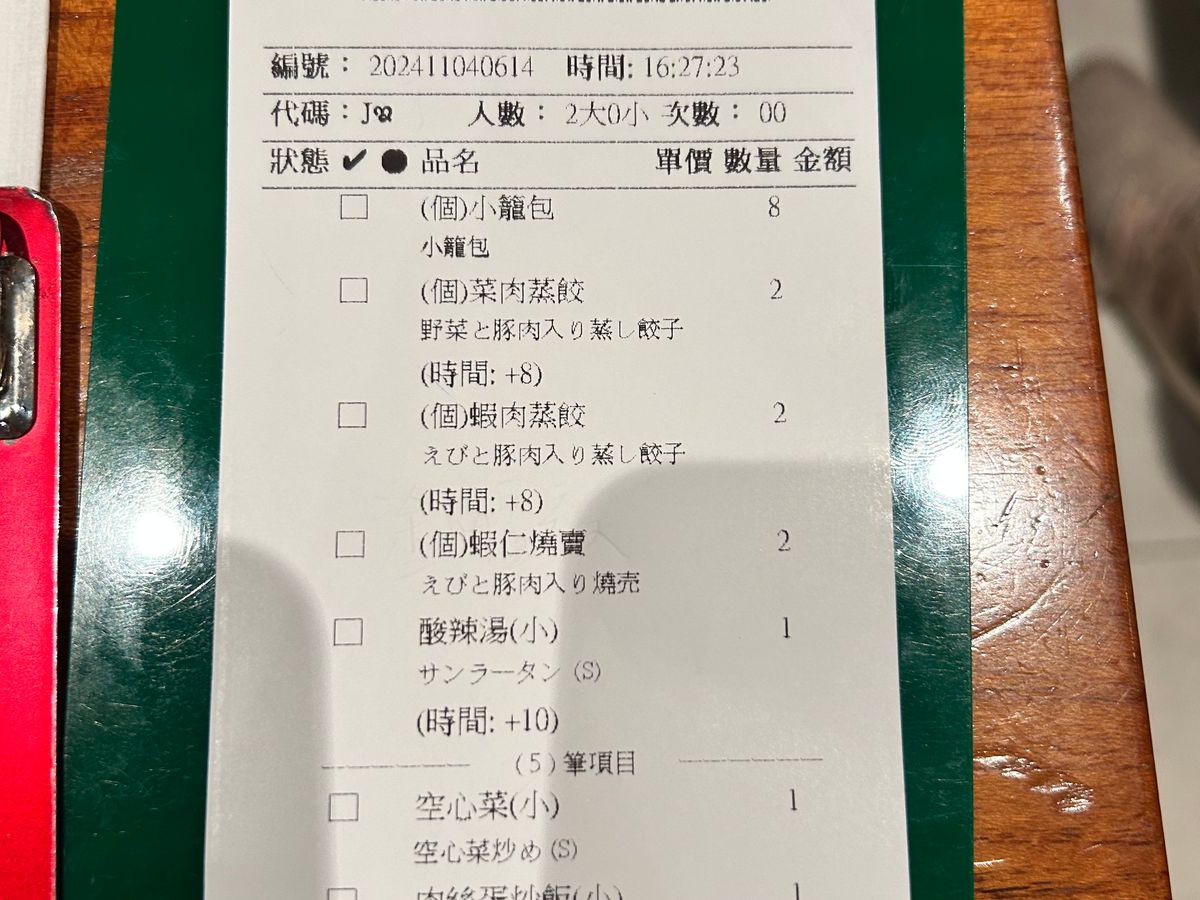 朝食をとらずにいきましたが、コースだけでそこそこお腹が一杯になりました。せっかくなので小籠包は追加しました。その他の追加オーダーも可能です。アプリなしで直接注文できました。