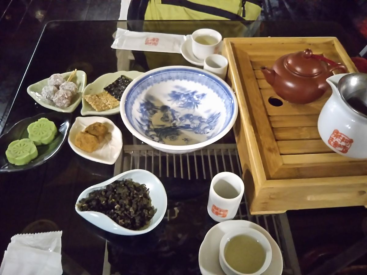 夜の九分は、大雨でしたが、幻想的な夜景と、阿味茶楼では、最初に日本語の話せるイケメン店員さんがの入れ方をレクチャーしてくれたのですが、殆ど覚えきれず、自分で適当に入れて飲んでました