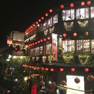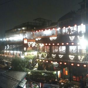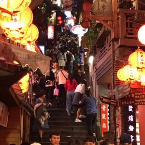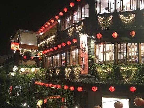 夕方九份と夜市に行く事になっていたのですが九份に着いた時にどしゃ降りの雨でびしょぬれになったのですが集合時間迄めちゃろうでのんびりお茶していたら丁度雨がやんで綺麗な夜景が撮れました