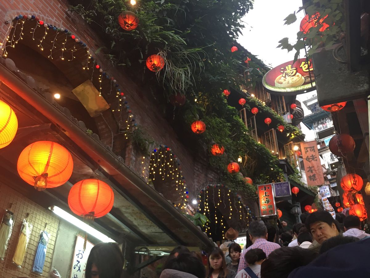 夜の九份は、大型バスでくる団体ツアーの方も多く、人ごみで友達と横に並ぶこともできず押し流されていくような場所もありました。笑