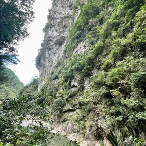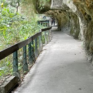 太魯閣では、渓谷ハイキングで自然の雄大さに圧倒されました。大理石の岩に褶曲の跡がくっきり。川は谷を深く削り、手彫りと思われるトンネルがクネクネと続き、まるで大分の耶馬溪を長く深くしたダイナミックさには感動でした。