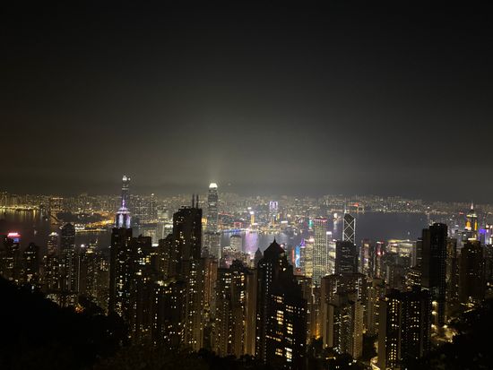 ビクトリア・ハーバーでシンフォニー・オブ・ライツを見てから、ビクトリアピークへフェリーで移動しました。