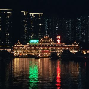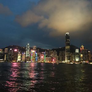 ビクトリアハーバーの夜景、高層ビル群の光はとても綺麗でバスからゆっくり見ることができます。