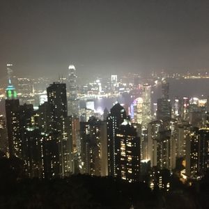 ビクトリアピークは平日でありながら一般の観光客の方も大変多く、団体は優先乗車ですが、それでも1時間くらい並びました。 そのため夜景を見る時間が20分程で、軽く写真撮影、トイレも混んでおり、あっという間に集合時間となってしまいました。 せっかくお土産やさんもあったので行きたかったのですが、断念しました。 アバティーンは想像とおり綺麗な夜景でした。 ガイドさんが参加者それぞれを写真を撮って下さり、いい思い出になりました。