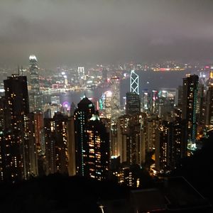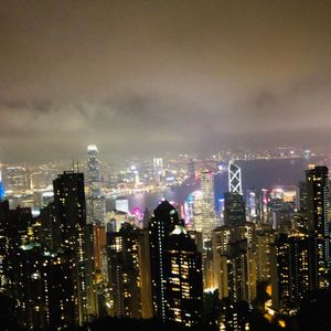 当日の朝から、雨は降ってないのですが、香港全体が霞んでいて、夜景も絶景とまではいかず少し残念でした。霞んでいるのは、遠く離れているのですが、台風の影響とのこと。ガイドさんの話では、70%の夜景とのことでしたが、個人的には、もう少し低い評価かな?と思いました。