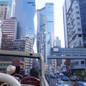 オープントップバスからのながめは、とてもよく、少しさむいですが、香港の街を一望することができます。おりたいところでおりて乗りたいときにいつでも乗れることがとても最高でした!