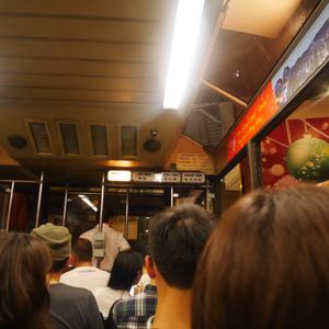 ピークトラムになだれ込んで、ガイドさんから勧められるとおり、夜景を見やすい右側席を確保。