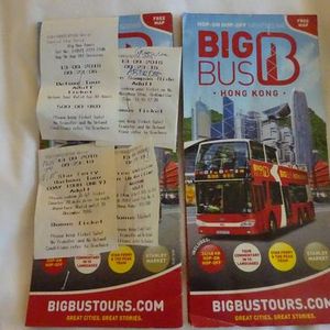 最初にチケットを引き換える為、尖沙咀のフェリー乗り場でインフォメーションセンターを探していたところ、パンフレットを持って歩いていたせいかBIG BUSと大きく書かれたシャツを着た係の人に声を掛けられたので、バウチャーを見せるとインフォメーションセンターまで連れて行ってくれました。引き換えは英語のみでしたので不安でしたが、全てのチケットをホチキスで付けてくれて渡されました。