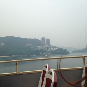 香港島着からずっと大雨。当日も朝は激しい雨でした。滞在期間も限られているので、午後の晴れを願って、朝10時30分にチケットを交換し、フェリーに乗船(九龍→香港島)しました。グリーンラインに乗り込み、雨が降り続いていたので1階に乗り込み、車内から海岸線を見つめ、アバディーンで下車。サンパン船に乗りました。サンパン船に乗るころも雨でしたが、黄色いビックバスのカッパを着て、記念撮影もよい思い出となりました。再びグリーンラインに乗り込み、スタート地点に戻るとちょうどレッドラインの出発間近。ランチにほどよい時間でしたが、ランチを諦め、バスの乗り込むことに。レッドラインに急ぎ乗り込み、香港島の町中をバスで見学。ビクトリアピークのトラム乗り場につく頃には、晴天に!混雑の横をすり抜け、トラム乗りこみ、頂上へ行くと…。絶景でした!!頂上で写真をたっぷりとり、お茶を飲んで降りきた16時半頃にはトラム乗り場の列は道路の反対側までのびており、とんでもないことになっていました。晴れたタイミング、そしてその夜景を見ようと、ものすごい人出になったようです。夜景が人気のようですが、昼のタイミングもとってもおすすめです。ビル群だけでなく、反対側の海方面も楽しめるのは昼ならではかと思います。その後九龍に戻り、最終のブルーラインに乗り込むこともできました。晴れていたので、2階席に乗り、風を感じてとても気持ち良い時間でした。24時間といっても使える時間は限定されますが、雨でも楽しめる、本当にお得なプランだと思います。