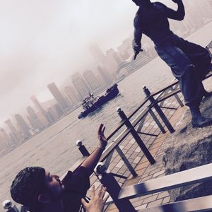 本題のツアー内容ですが、先にビクトリアピークに行きます。ピークトラムは皆さんの体験談にあるように長蛇の列になっており、そこをガイドに誘導されてすり抜けながら乗り場直前まで行きます。トラムが折り返し運転で山頂から帰って来た所で乗り場に足早に行きますが、今回は通常のスタンバイと同じ流れで乗り込んだので席は奪い合いといった感じでした。ただ、待ち時間に「右側の席がいい」という情報をもらいました。トラムは山の斜面に沿って走り、思ったより傾くため立って乗る方はかなり大変だと思いました。10分程度で山頂に着き、トラムと一緒に撮影する事や建物内のブルース・リーと撮影する事も待ってもらえたりしました。