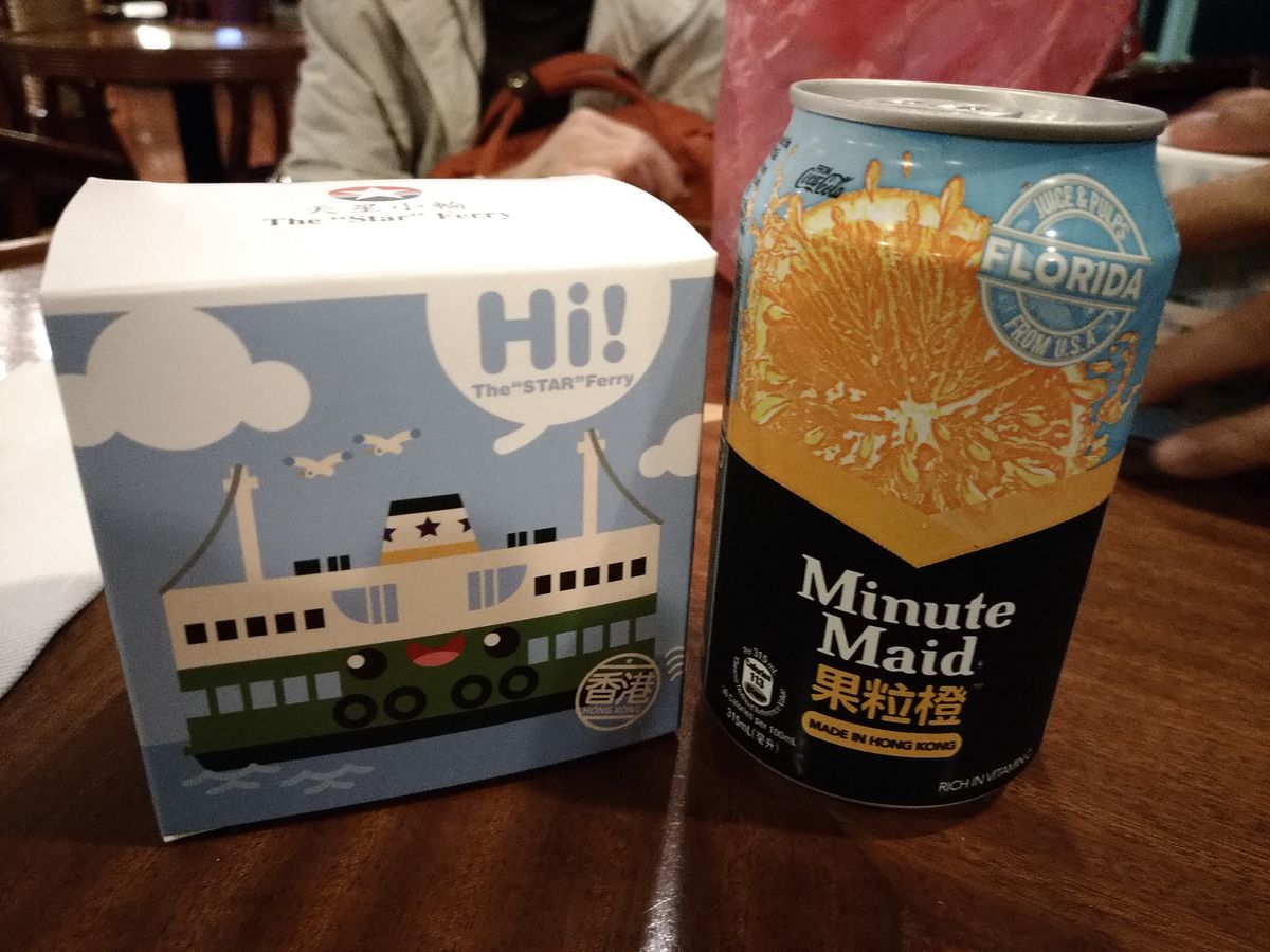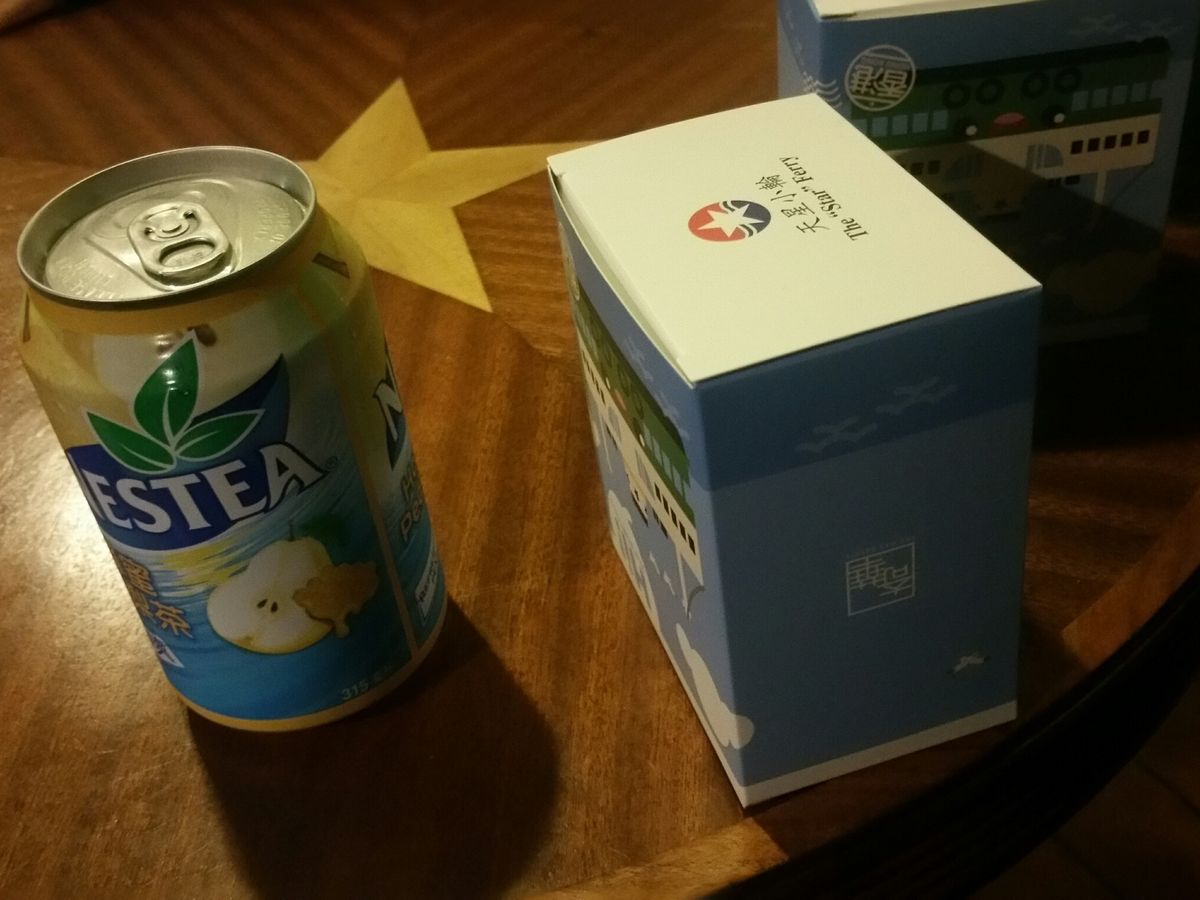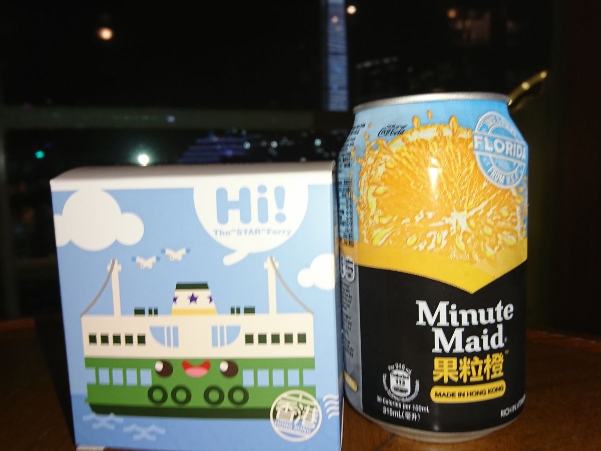 庫から好きな缶ジュースを自分で取り出します。(写真のスターフェリーの箱が軽食のお菓子です。)