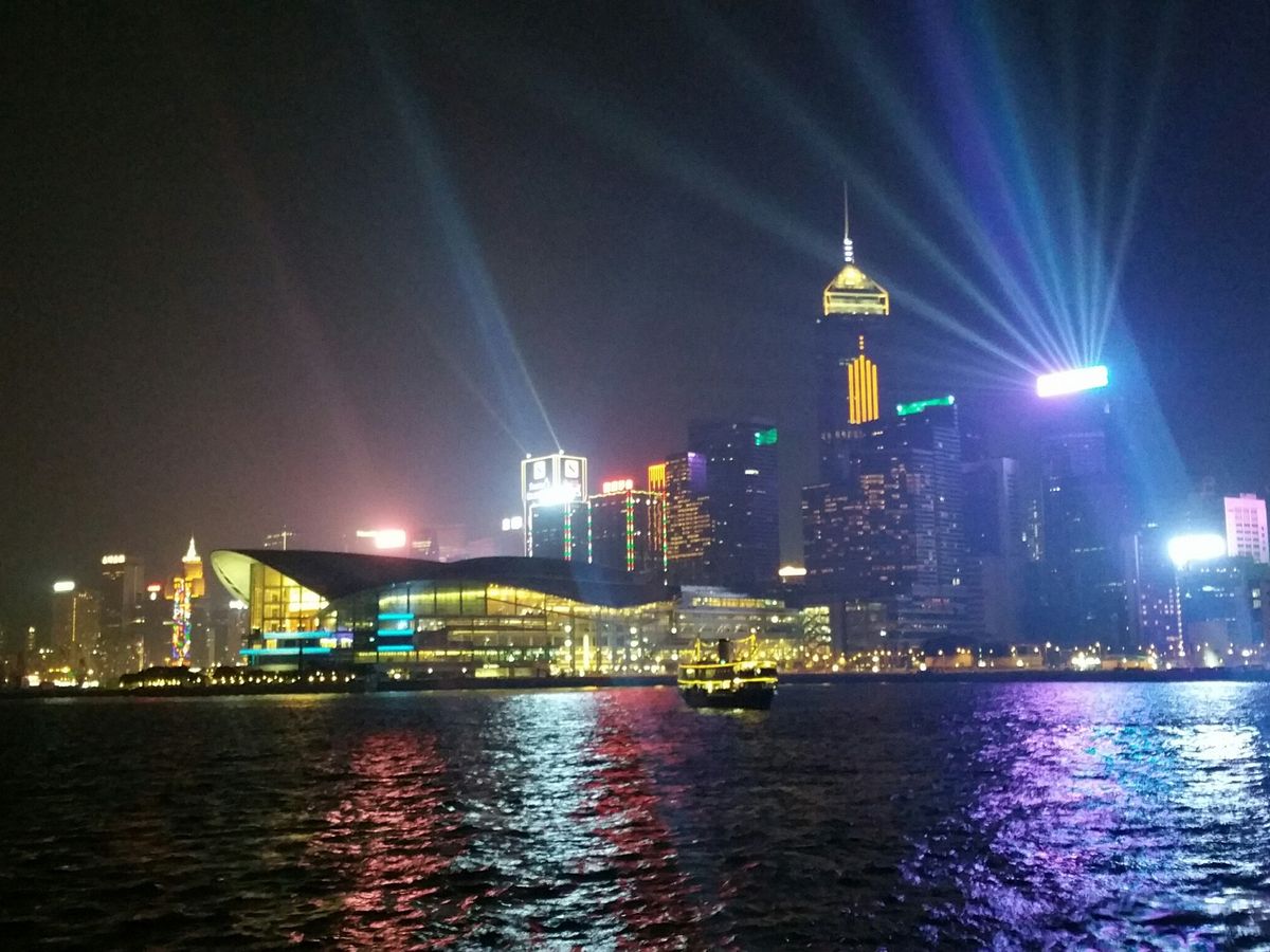 埠頭などかなりの人混みが見えましたが、船の上からゆったりと座ってみることができ、香港の夜景をレーザーショーが彩り、短い時間でしたが、とても満足しました。