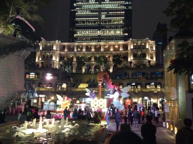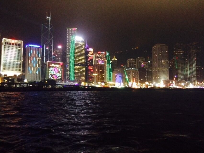 高いビルの一部は、見えなかったけど、ビクトリアピークからみる夜景とは違って、まじかでみるイルミネーションは綺麗でした。