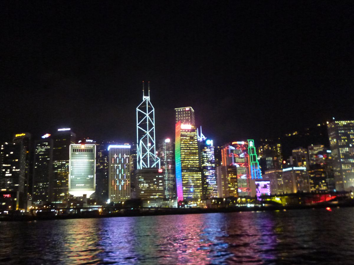 ショー終了後のクルーズでは日本語での解説アナウンスもあり、ビルの光はそれなりにきれいだったので、シンフォニー・オブ・ライツを船上から楽しむという目的ではなく、夜景をクルーズで楽しむという目的ならよかったかなと思います(それならスターフェリーで充分な気もしますが)。
