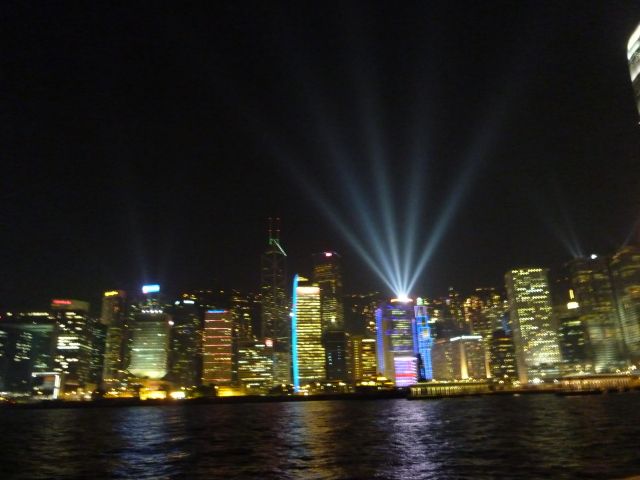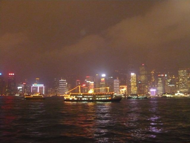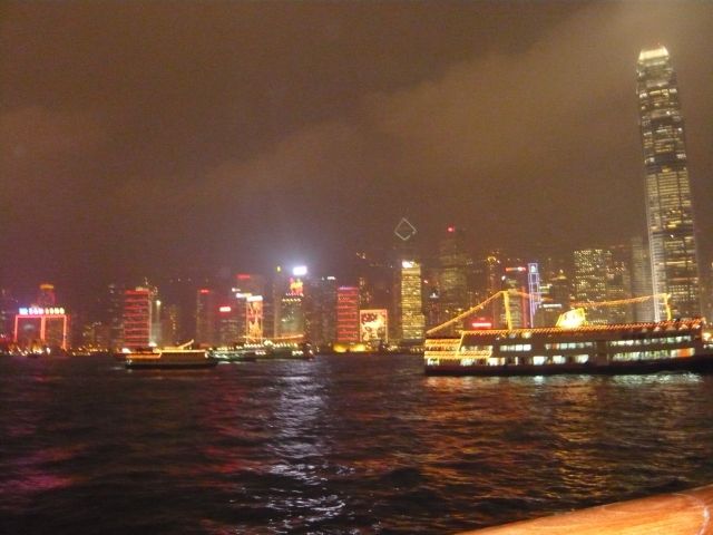 頑張って、早く乗船したのですが、先頭の屋根の無いブリッジの椅子には、座れませんでした。でも、スターフェリー乗り場から、セントラル、ビクトリアと途中下船せず、最後まで一周したので、下船した人たちでだんだん空いてきて、後半はシンフォニーオブライツが終わった後も、じっくりと椅子に座って夜景が堪能できました。フェリーなので九龍、香港島両サイドのが、また、接岸するときに近づいて行くので、間近に光輝いて見えるので、迫力が有り一番の夜景干渉でした!