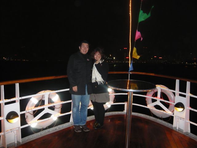 日本ではありえないようなライトアップです。(東京デェズニーランドは別ですが)ダイナミックというわけではないのですが、船の上でゆっくりできるし、よかったです。