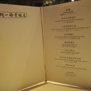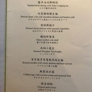 台風の影響で多くのお店が閉まりショッピングが楽しめない中、お食事はゆったりとできたので、良かったです。お天気は残念でしたが、それでも夜景の見える席で、美味しくいただきました。フカヒレスープやスライスのアワビの煮込み、小さなアワビが丸ごと乗った麺など、どれも美味しく、日本人好みのメニューがセットになっており、女性には充分な量でした。お店でお品書きを見せてくれますが、こちらで紹介されているのと少し内容が違いましたが、実際のほうが豪華に感じたので、嬉しかったです。メニュー内容が季節で変われば、また利用したいと思います。