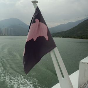 結局3時間海にいて、イルカの姿は遠目に数回見ただけです。自然の生物を観察するのは、難しいですね。帰りの船内では、ピンクイルカ関連のお土産も販売されていました。