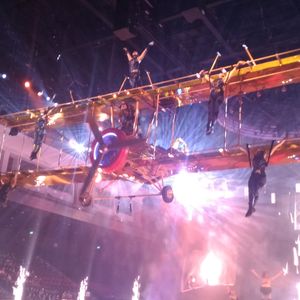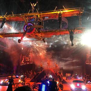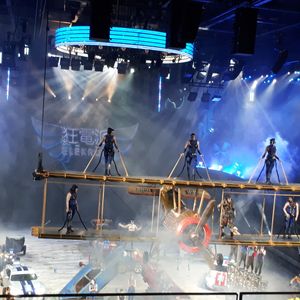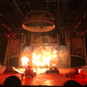 ショーが始まるとすぐにエレクトロンの派手で独特な世界に引き込まれます。映画のマッドマックスを彷彿させられ、激しくギターを引いているモヒカンの人がショーの所々に現れてくるので探すのも楽しみの一つでした。