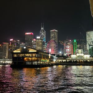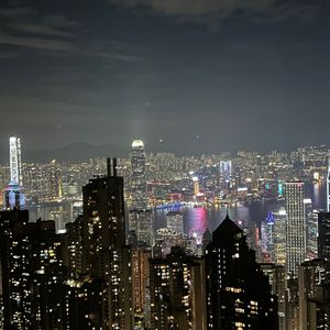 ビクトリア・ハーバーでシンフォニー・オブ・ライツを見てから、ビクトリアピークへフェリーで移動しました。