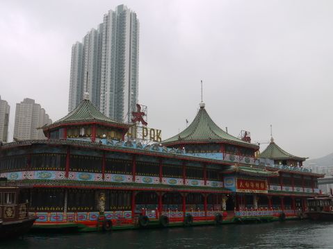 上環のマカオフェリー乗り場マックカフェで拾っていただき、早速お線香で有名な神社、イクトリアピークへはピークトラムが楽しかったです。そして、島の南側の水上生活者領域の見学、ジャンボ水上レストランを見て、トンネルを抜け、さらに海底トンネルを通りカオルーン側で昼食、その後は、そこで解散の方と他のコースに分かれ私たち2人になりました。おみくじの神社、金魚街、ここは通りの左右は金魚などの観賞魚を売っているお店が並び壮観でした。隣の通りは、花園街を見て、花園といっても花でなく生活用品や洋服などを売っている屋台がずらっと並んでいるところでした。翡翠工房などを見て免税店で解散。ガイドさんも親切で物を買わせようとする方でなかったのでとても気持ちよく観光することができました。