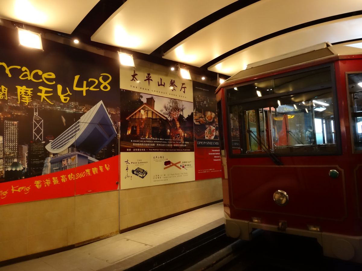 ビクトリアピークへとトラムに乗り込む、急こう配を上る間の絶景はなかなかなものトラムも風情があり楽しいひと時でした。
