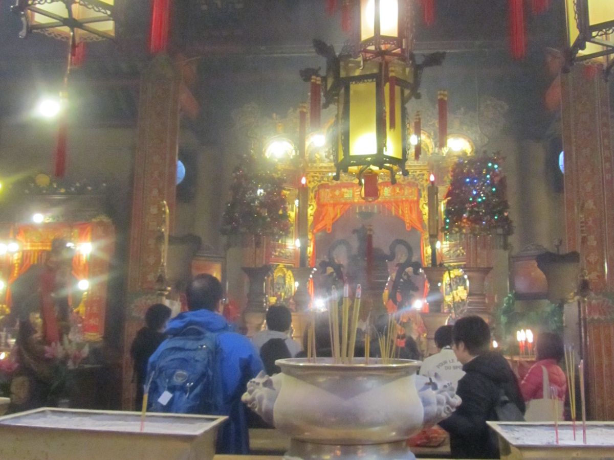 年末の日曜日のせいか、ピークトラムの駅は激混みで、ツアーでなかったらとんでもないことになっていた気がします。夜のヴィクトリア・ピークも良いのでしょうが、昼間のヴィクトリア・ハーバーの両岸に広がる香港島と九龍島のビル群の眺めも最高です。文武廟では線香をあげて願い事をしてきました。帰りは途中で我々だけCauseway Bayで降ろしてもらい、効率的に観光ができました。ガイドさんの説明もとても楽しくて良かったです。