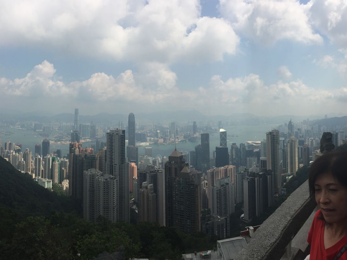 3ビクトリアピーク ガスっていて、というより中国からの影響の様(添乗員談)で10万ドルくらいの景色。