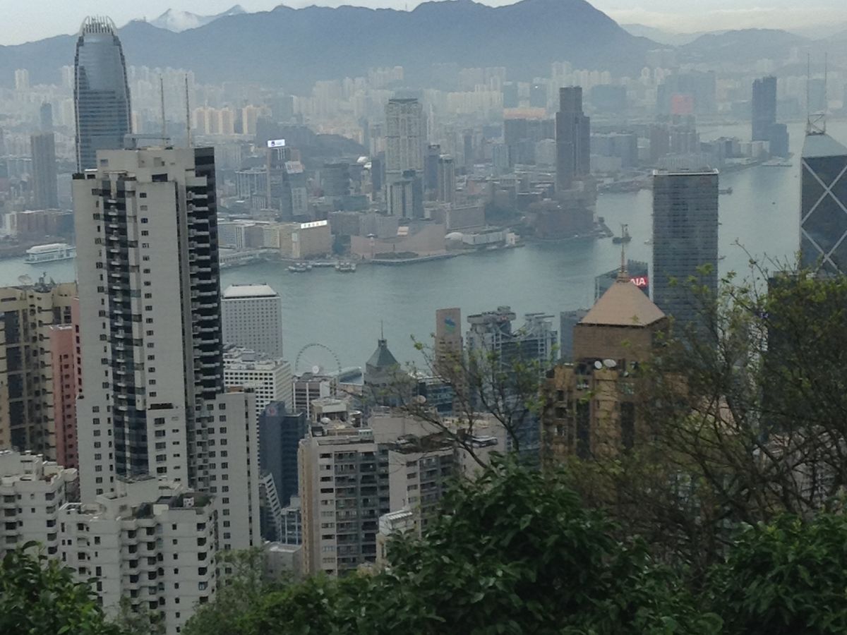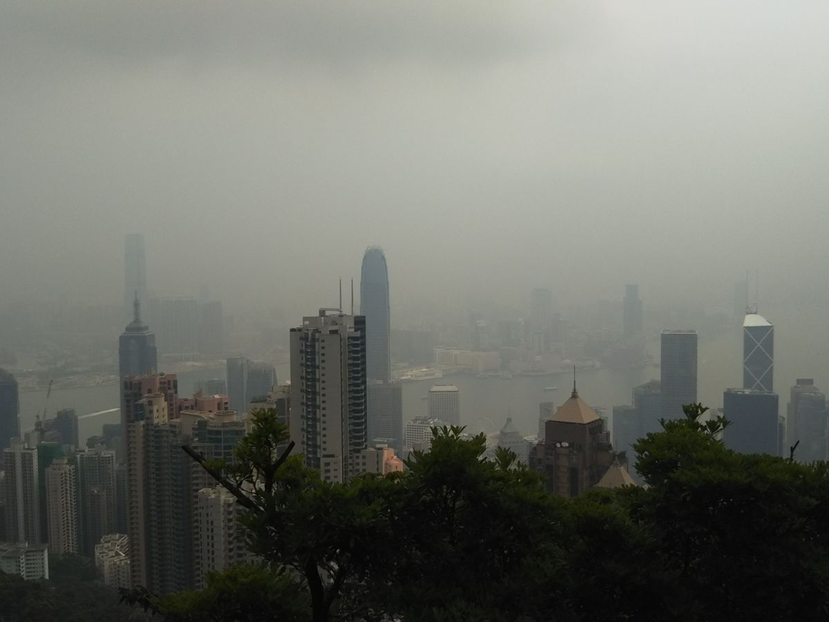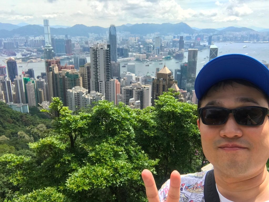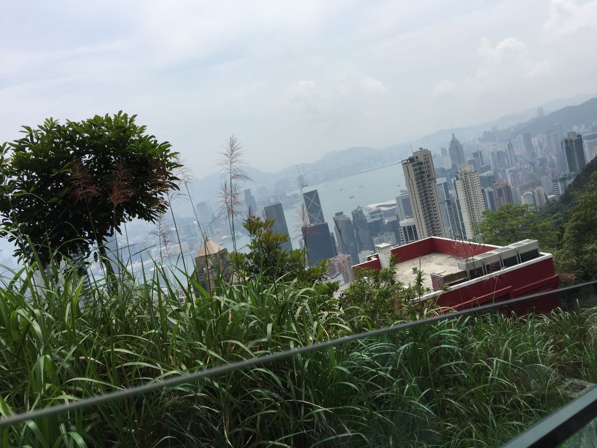 台風の影響で朝から雨が降っていましたが、ビクトリアピークの山頂に上った瞬間、雨が上がって素晴らしい景色を見ることができました。