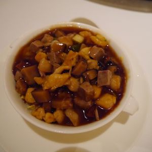 昨年も同じコースを頂きましたが、 最初に付きだしが違うだけで、それ以降はデザートも含めて全く同じ料理で、愕然としました。 美味しかったのですが、香港にまで外国から食べに来る一期一会の客への対して、もう少し配慮が必要だと思いました。