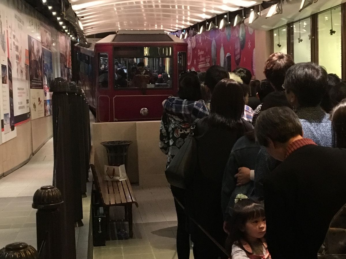 ビクトリアピークまでの乗車がスムーズでテンション上がりました。列車はいい席は争奪戦でした笑