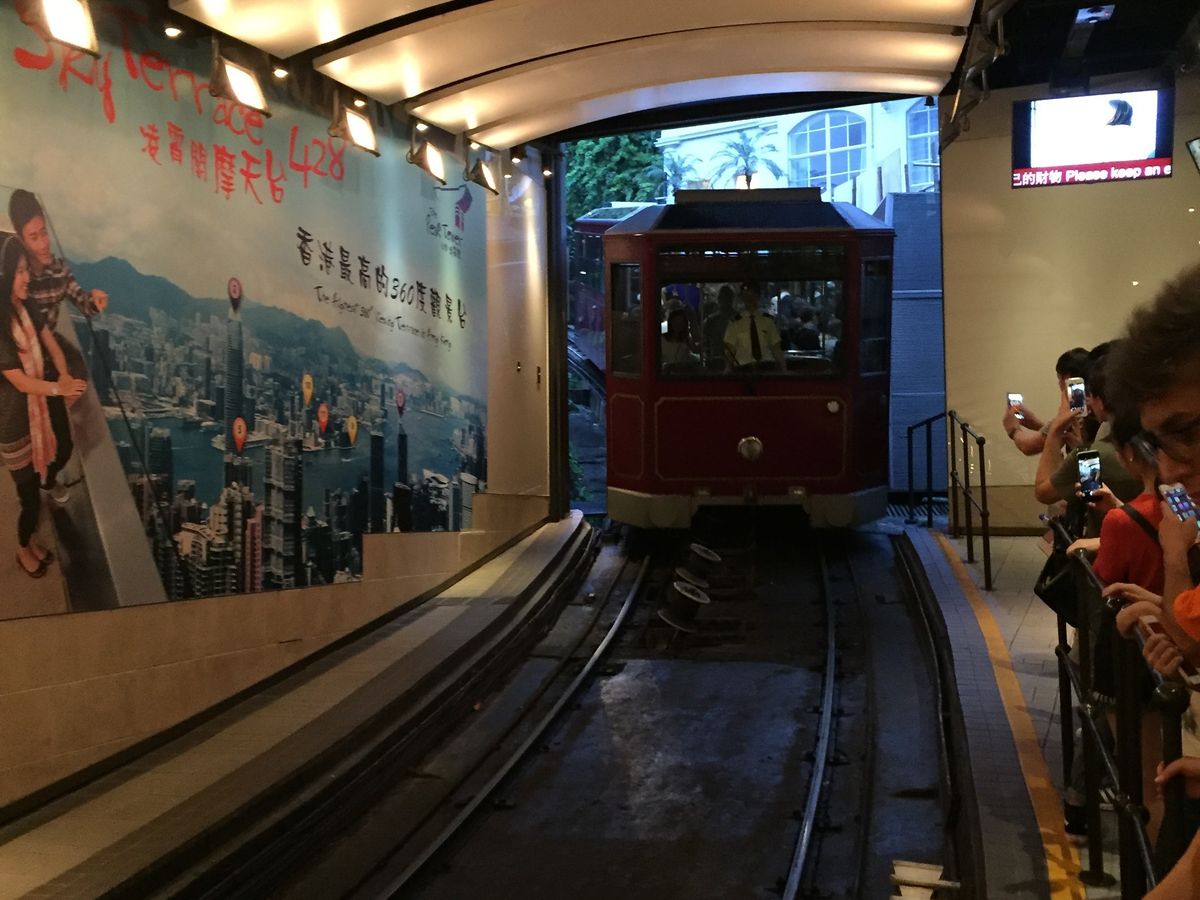 ビクトリアピークのトラム乗り場は、すごい行列でとてもびっくりしました。その上、ツアーで優先搭乗の人達が入るので全然列が進まず、フリーで行くなんて考えられないくらいです。