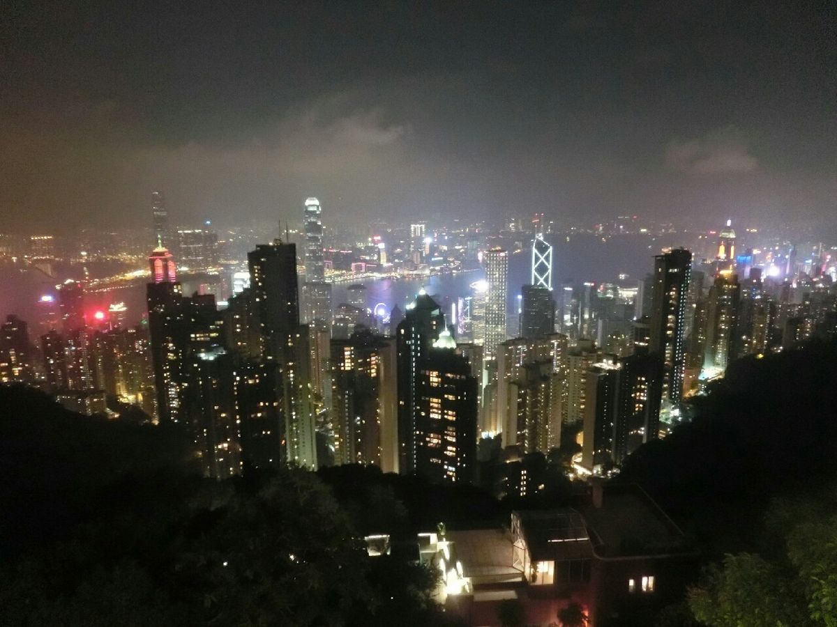 オープントップバスで街中を走ってると、飛び出た看板や、キレイなネオンの看板などとても賑やかで楽しかったです。ビクトリアピークからの夜景は大雨で見ることができませんでした。途中、バスの中から見ましたが、うっすらぼやけて見える夜景も良かったです。