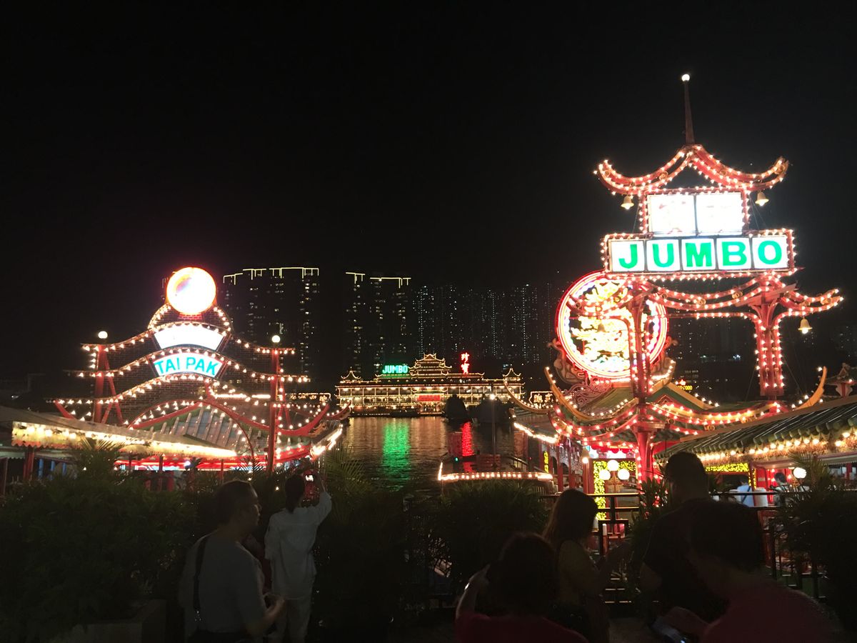 行ったのは連休中で、トラム乗り場は尋常じゃない混みっぷり。おそらく個人で行くのは無謀だったなと思い、並ばないツアーで大正解。夜景は綺麗に見え感動しました。その後行った水上レストランは、まるで竜宮城のような豪華さで香港に来たーという感じを味わえます。料理は正直大したことなかったですが、雰囲気は最高です。