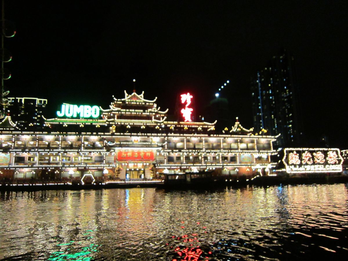 アバディーンの水上レストランの夜景は浮かれるほど綺麗でしたよ。