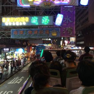 そしてまたホテルに戻り、ガイドさんとはお別れし、他の方々、別のガイドさんと合流し、オープントップバスに乗りました。高い建物に囲まれたネオンサインがいっぱいの香港の街中を風をきって走るので少しスリリングでとても楽しかったです。ただ1つ残念だったのが、写真を撮る為に1回停まったのですが、写真を撮るには少しネオンサインが少なく、香港らしいネオンいっぱいの写真が撮れなかったことです。